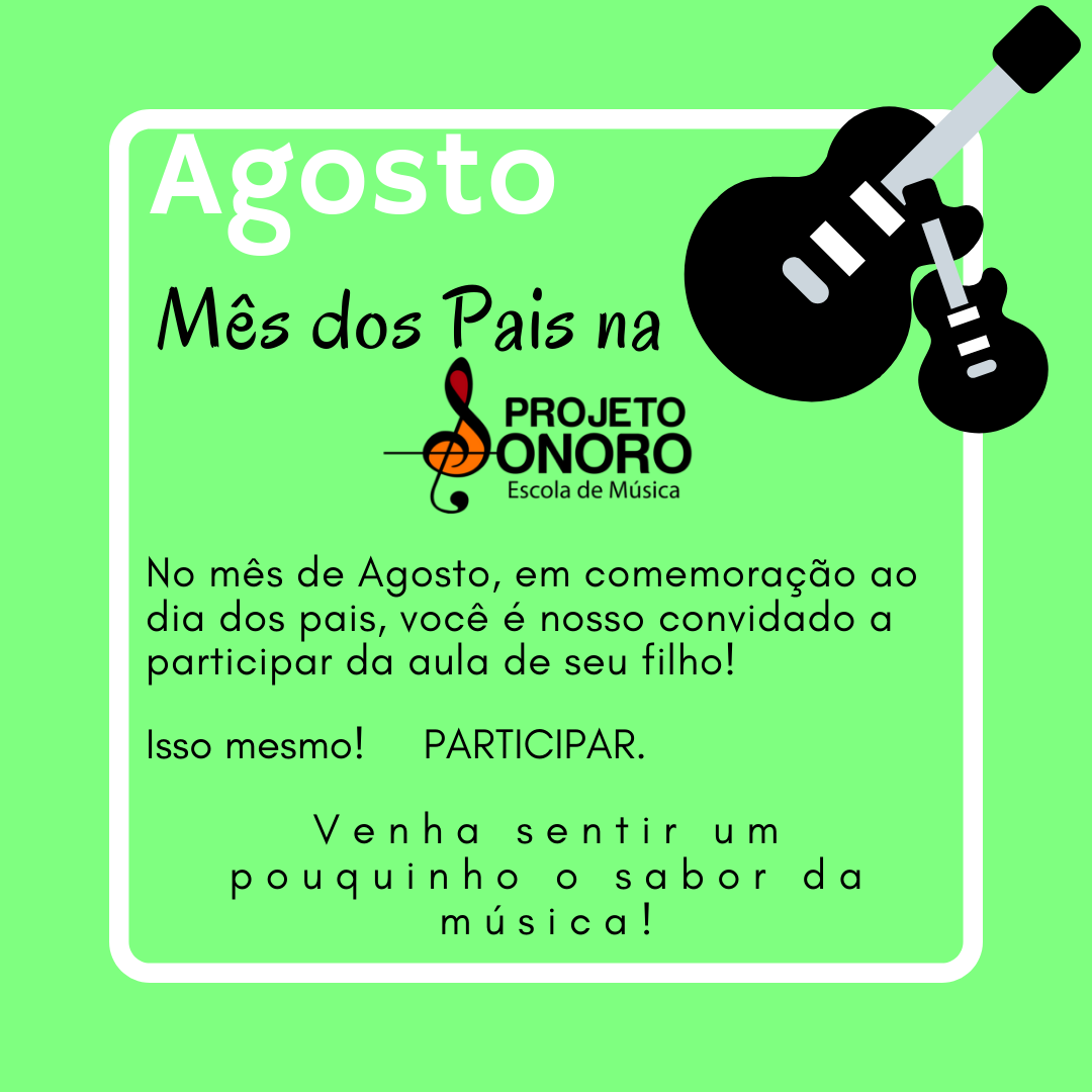 Você que é pai não pode perder a oportunidade de aprender um pouco do que seu filho investe em aprender. No mês de agosto daremos de presente aos queridos pais essa oportunidade de participar da aula dos seus filhos. Venha nos visitar para mais informações.