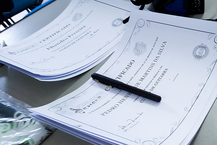 Entrega de certificado de Bateria, Baixo e Guitarra - 2016