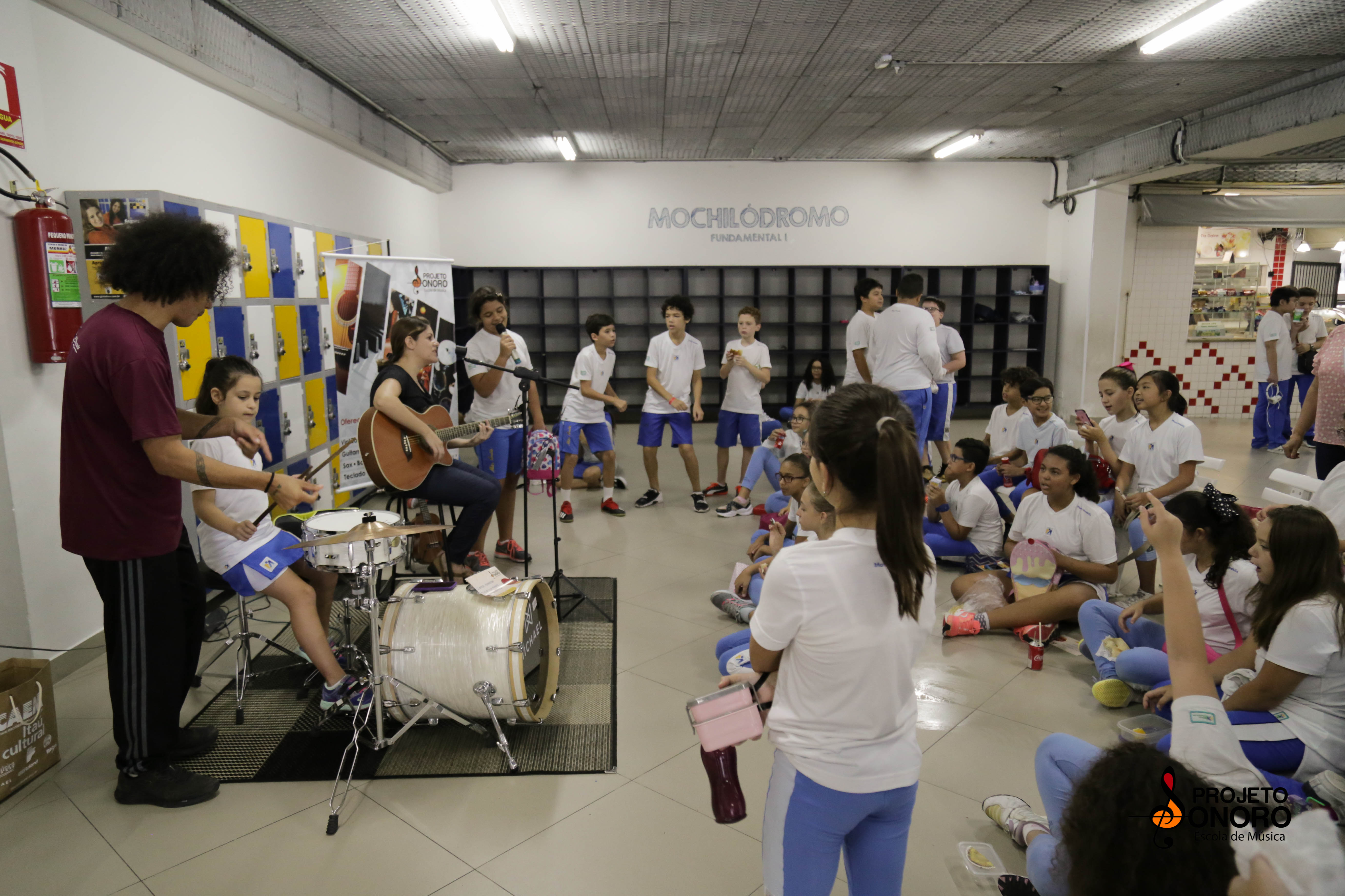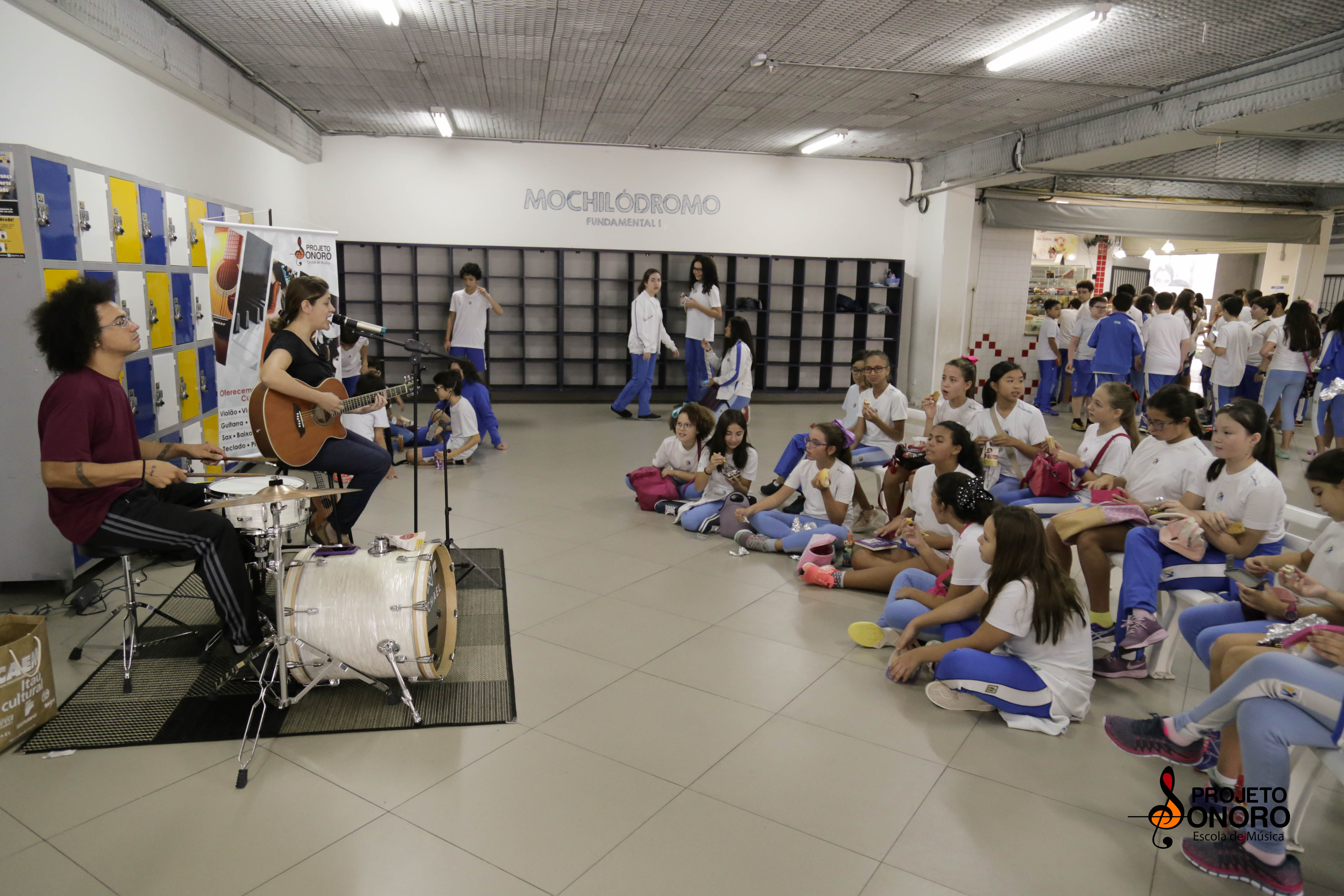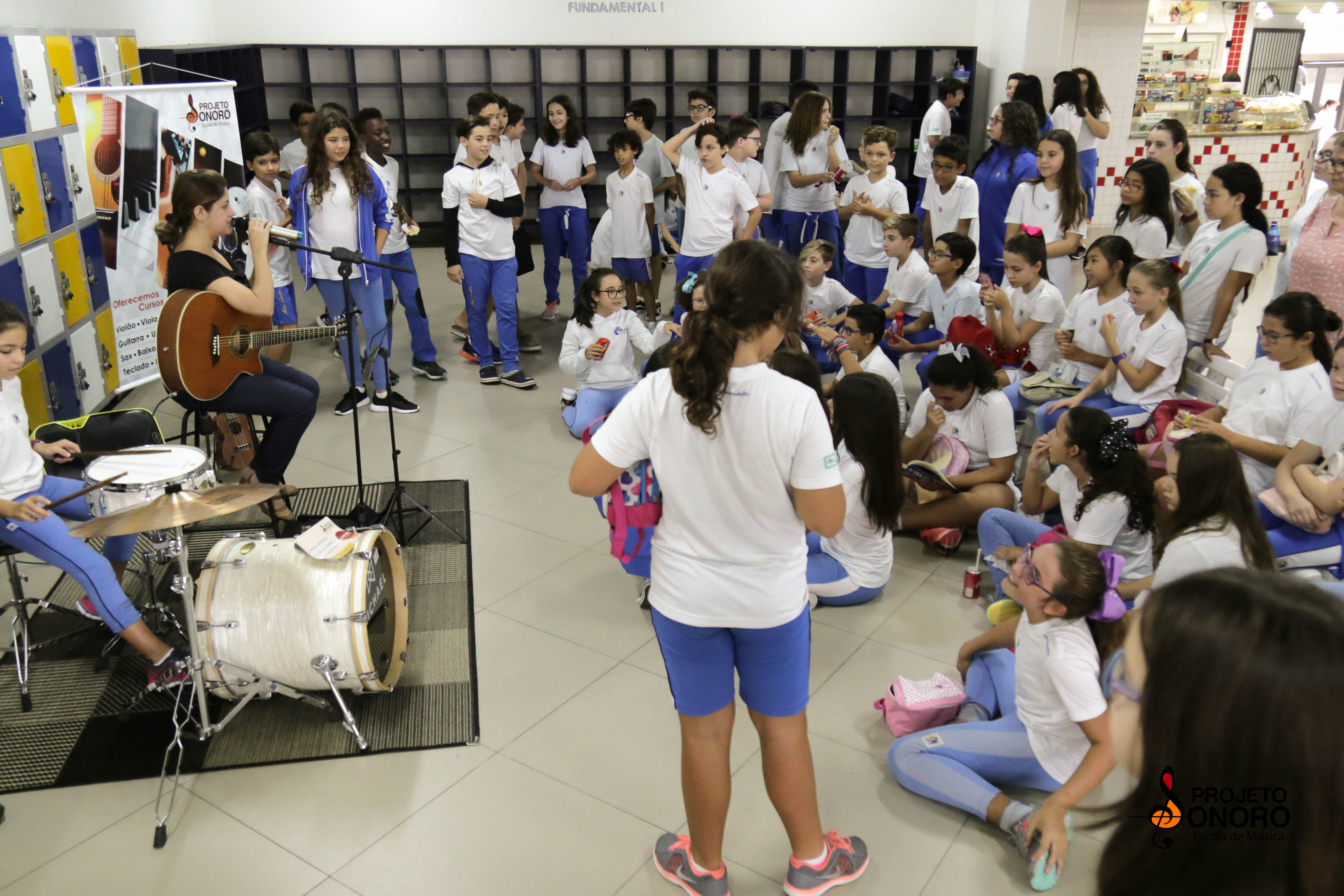 Intervalo cheio de tons e sons para os alunos do colégio. Ouvindo, sentindo, experimentando e vivendo música.
